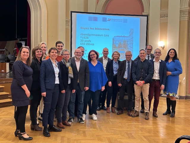 Anwesend waren außerdem Frau Baumgartner von der Bildungsdirektion, Frau Schrems-Gadermaier, EU-Sprachreisen-Koordinatorin der Bildungsdirektion, und Daniel Rötzer-Matz, Koordinator der Schulpartnerschaft zwischen Linz und Amiens.
